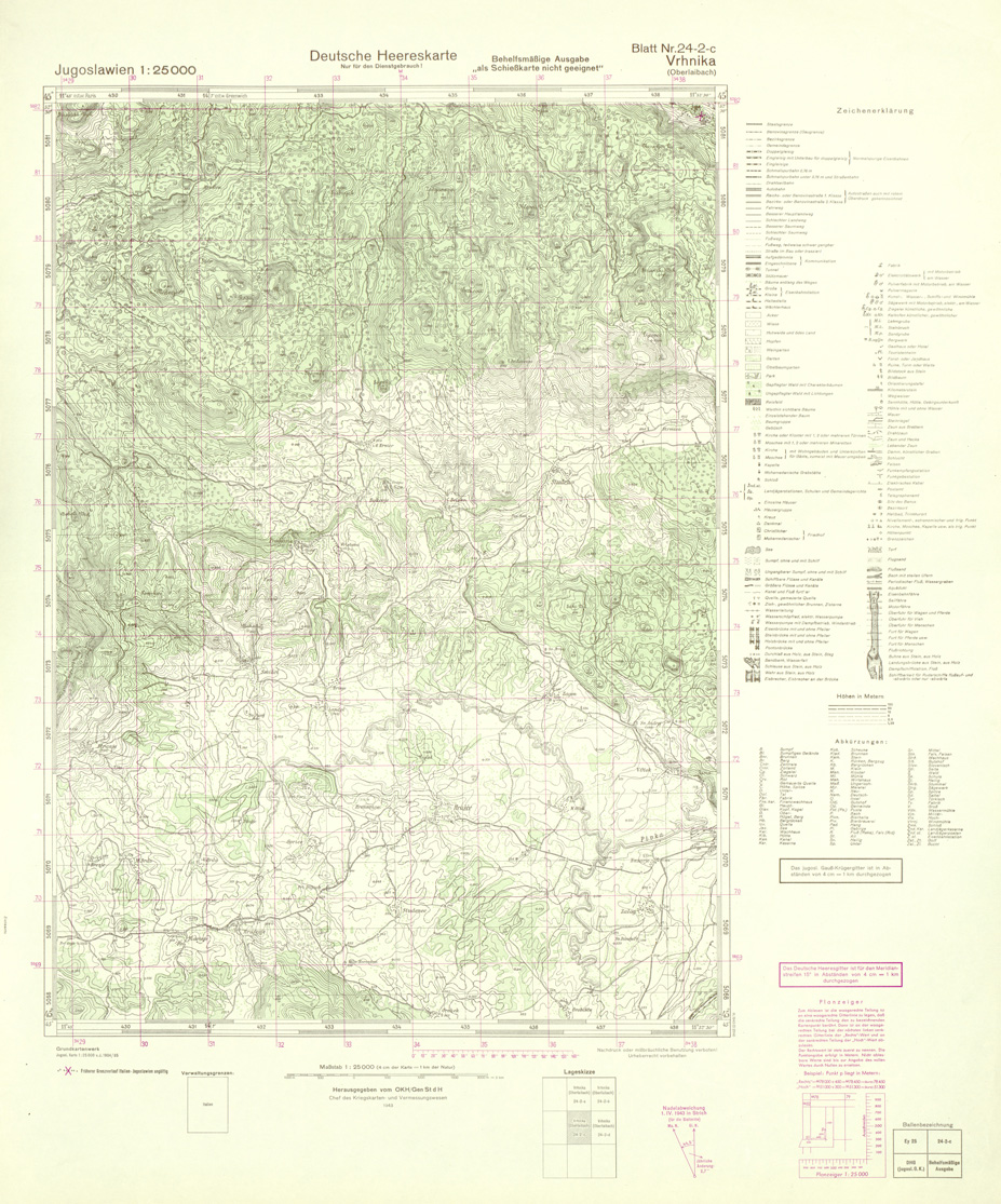 "Riproduzione allestita nel 1943 dall' Istituto Geografico Tedesco di analoga carta Jugoslava rilevata negli anni dal 1934 al 1937"
