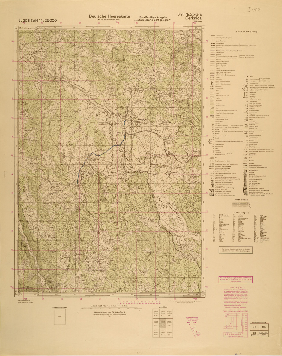 "Riproduzione allestita nel 1943 dall' Istituto Geografico Tedesco di analoga carta Jugoslava rilevata negli anni dal 1934 al 1937"