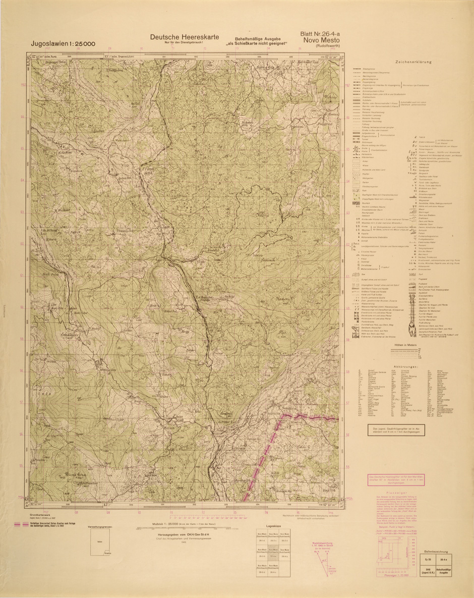 "Riproduzione allestita nel 1943 dall' Istituto Geografico Tedesco di analoga carta Jugoslava rilevata negli anni dal 1934 al 1937"