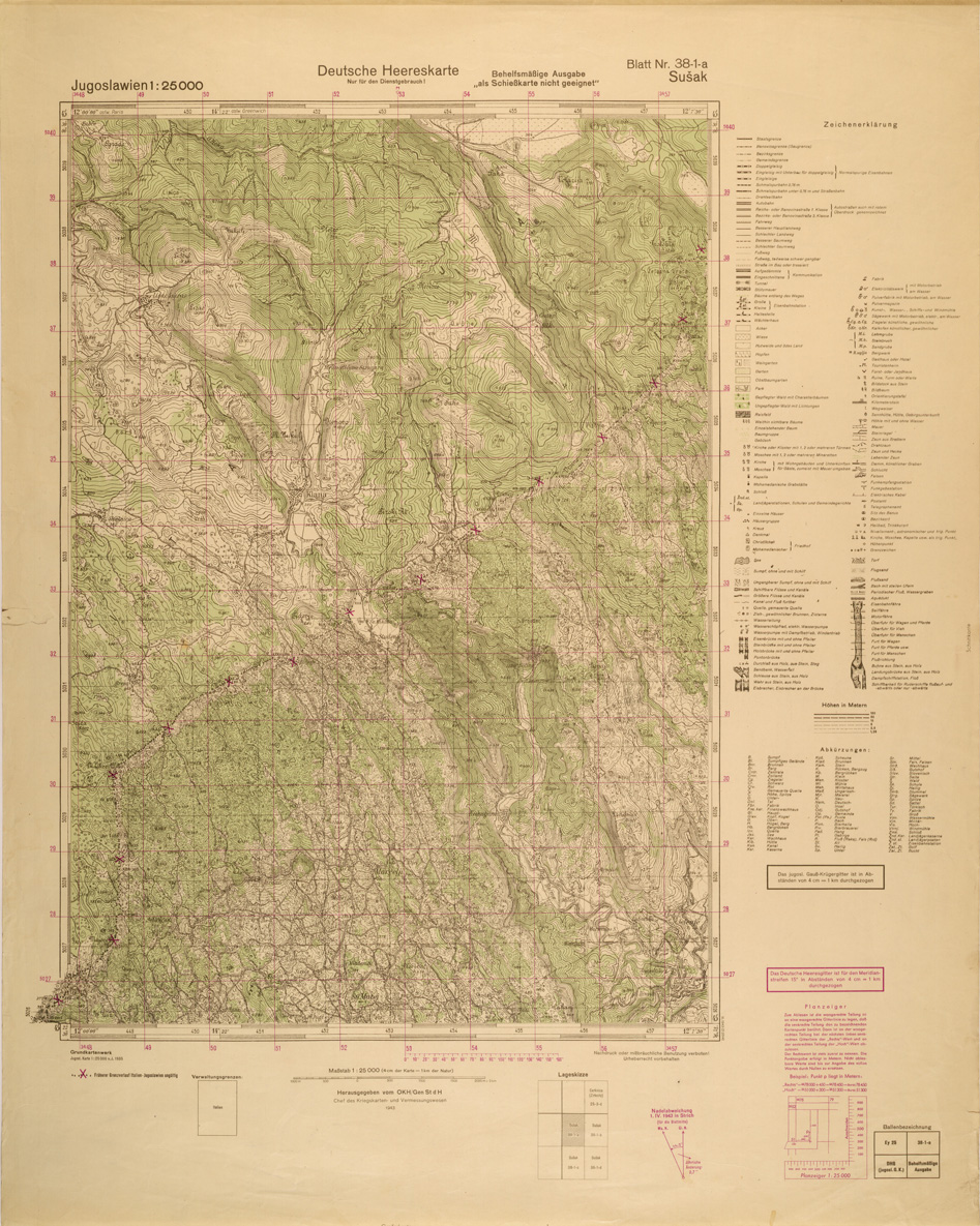 "Riproduzione allestita nel 1943 dall' Istituto Geografico Tedesco di analoga carta Jugoslava rilevata negli anni dal 1934 al 1937"