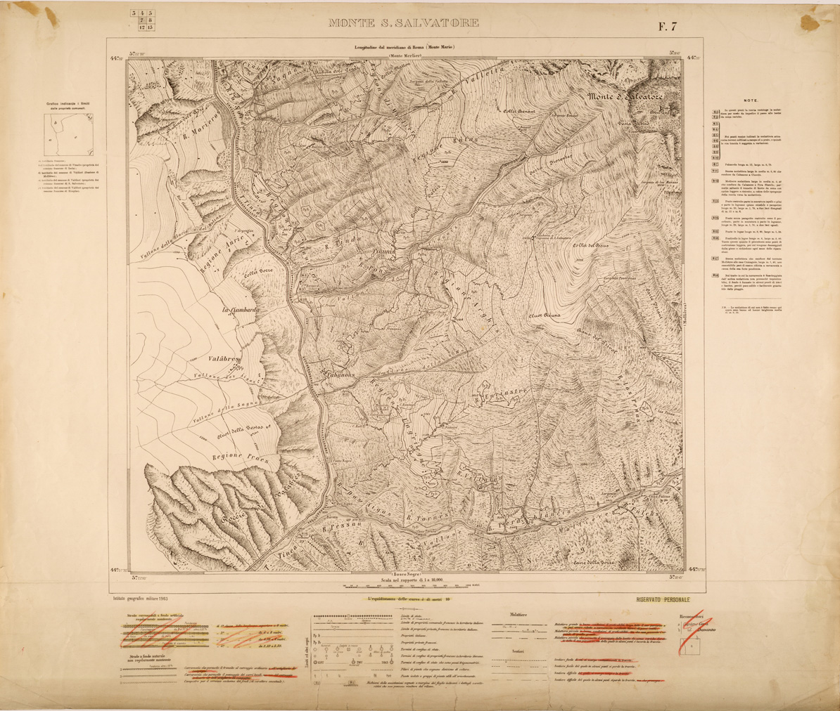 I rilevamenti topografici per la realizzazione della “Carta d´Italia&lrquo” iniziarono nel 1878: si trattava di un´opera così importante e lodevole che meritò la consapevole attenzione, non solo degli addetti ai lavori e delle categorie professionali coinvolte, ma anche delle più alte autorità del Regno.