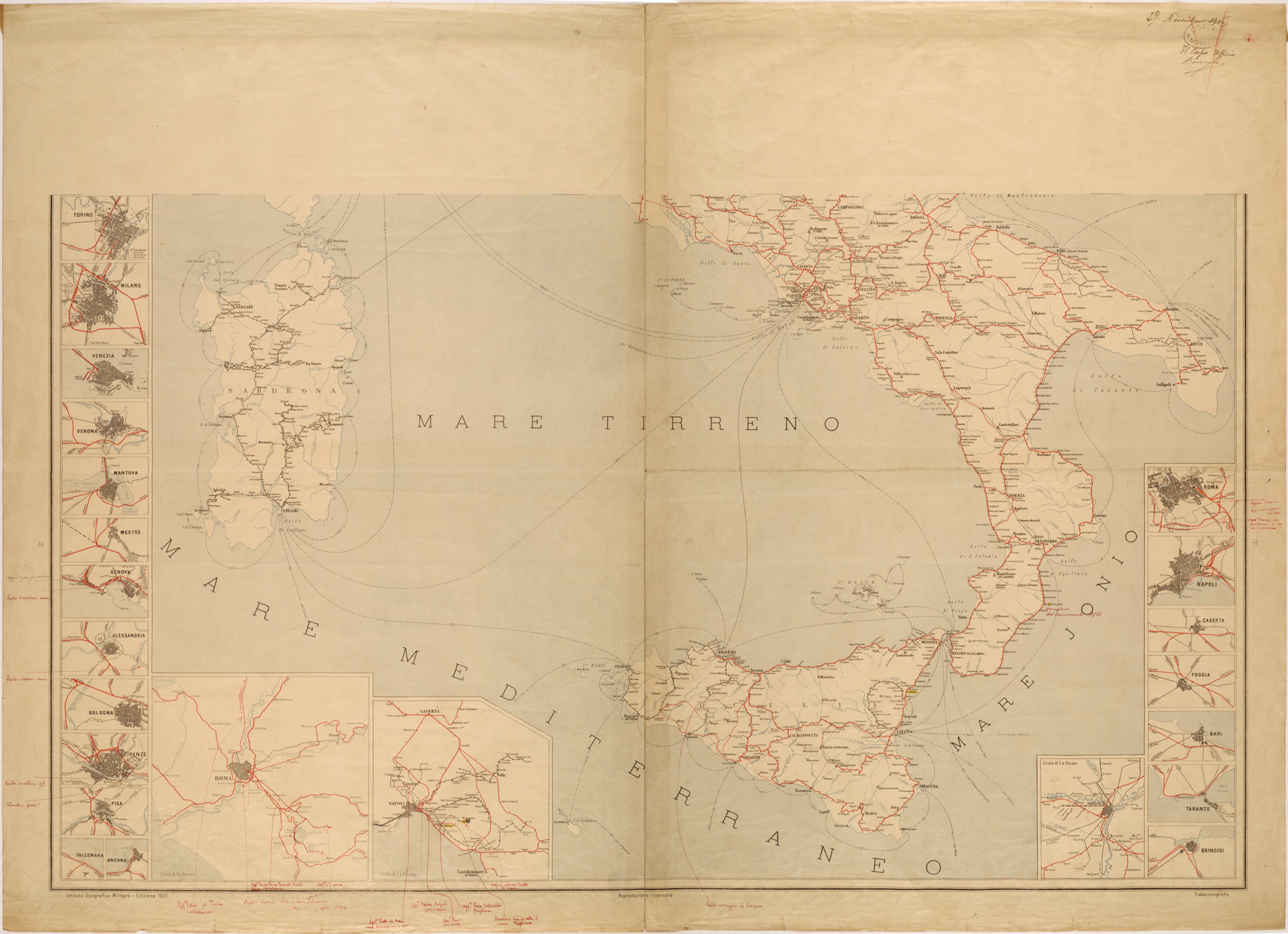 CARTA DELLE FERROVIE E DELLE LINEE DI NAVIGAZIONE DEL REGNO D'ITALIA - TAVOLA SUD
