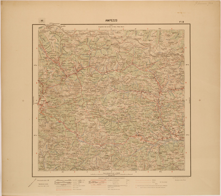 Il governo del Regno, considerando inadeguati i disomogenei lavori preunitari affidò nel 1872 all´Istituto Topografico Militare (il quale assunse l´attuale denominazione nel 1882) l´esecuzione del progetto di rilevamento generale del territorio dello Stato e della formazione della nuova Carta Topografica d´Italia alla scala 1:100000. L´Istituto, formatosi dalla fusione dell´Ufficio Tecnico del Corpo di Stato Maggiore del Regno Sardo con gli Istituti e gli Uffici topografici e cartografici dei diversi stati esistenti nella penisola prima che si compisse la sua unità politica, ereditò il materiale scientifico e cartografico preunitario caratterizzandosi di fatto come il depositario e continuatore della scuola e della tradizione cartografica nazionale.