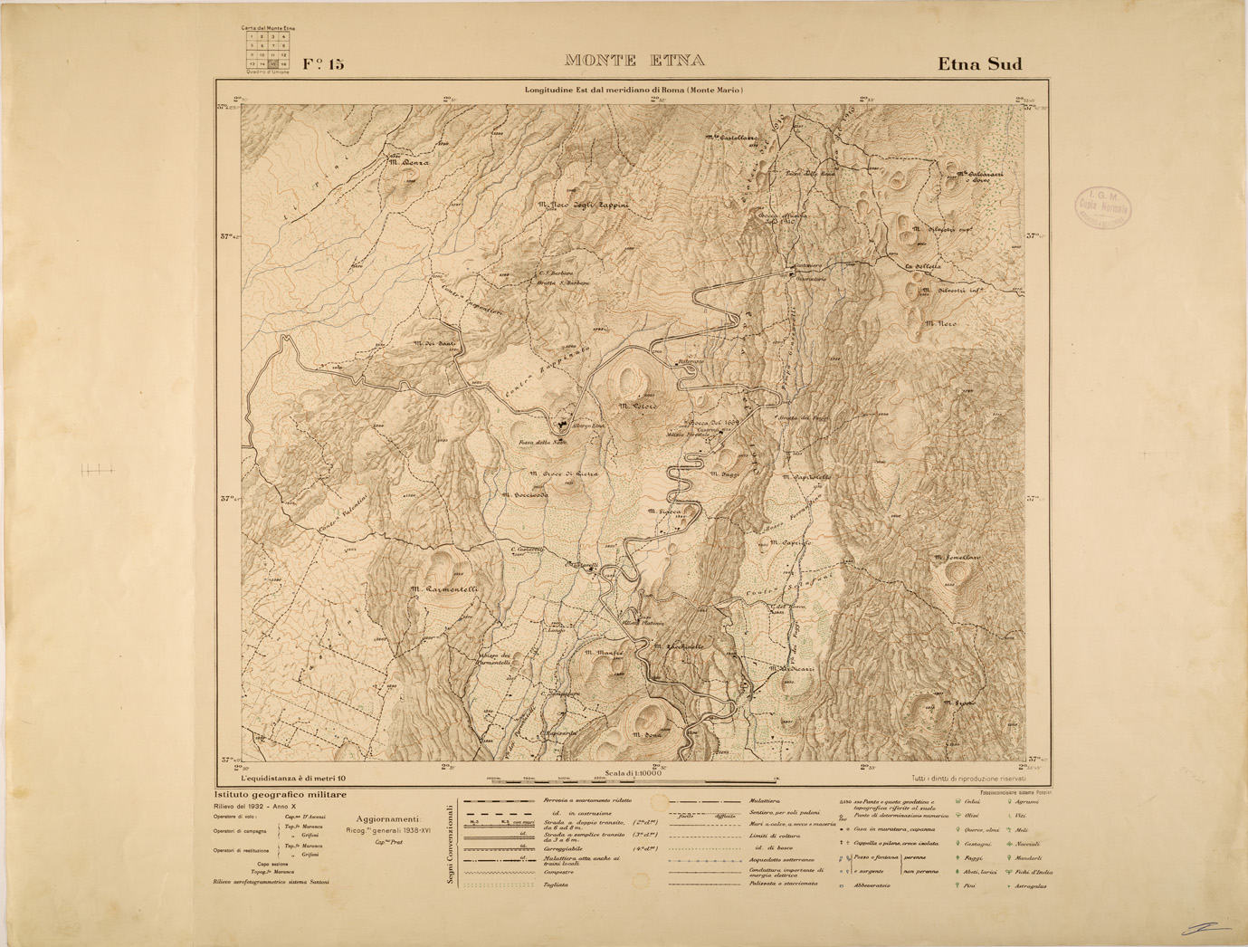 "Carta realizzata dall' IGM con gli scopi, oltre al normale fine cartografico, di testare l' allora recente procedimento di rilievo aerofotogrammetrico in un settore particolarmente impegnativo e aderire alla richiesta dell' Università di Catania e dell' Osservatorio Etneo di una carta dettagliata del Vulcano."