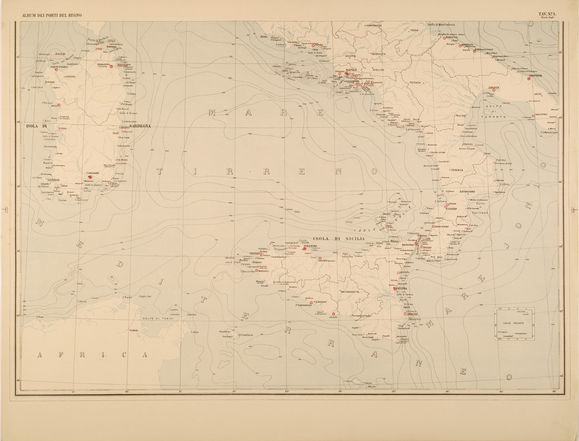ALBUM DEI PORTI MARITTIMI DEL REGNO D'ITALIA - TAVOLA 01 PARTE SUD - QUADRO GENERALE