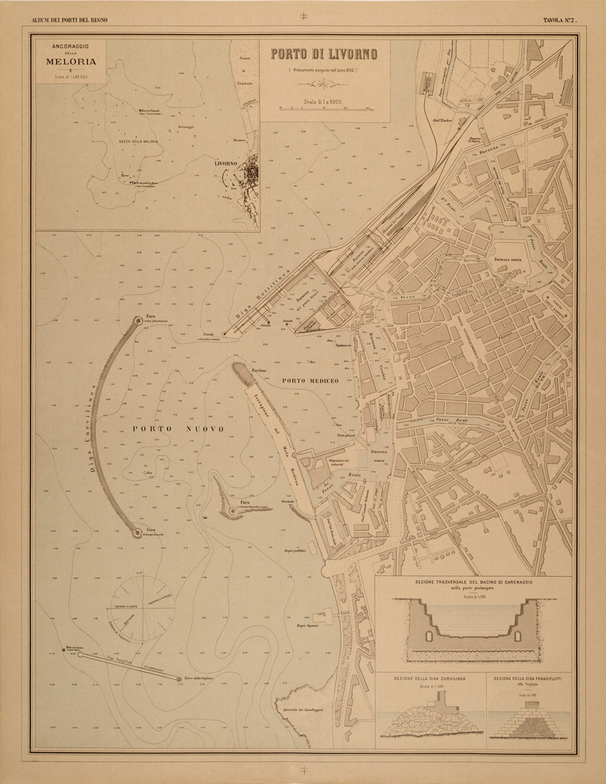 ALBUM DEI PORTI MARITTIMI DEL REGNO D'ITALIA - TAVOLA 07 - ANCORAGGIO DELLA MELORIA - PORTO DI LIVORNO