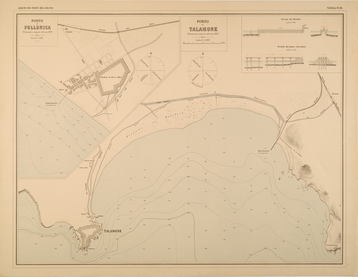 ALBUM DEI PORTI MARITTIMI DEL REGNO D'ITALIA - TAVOLA 10 - PORTI DI FOLLONICA - TALAMONE