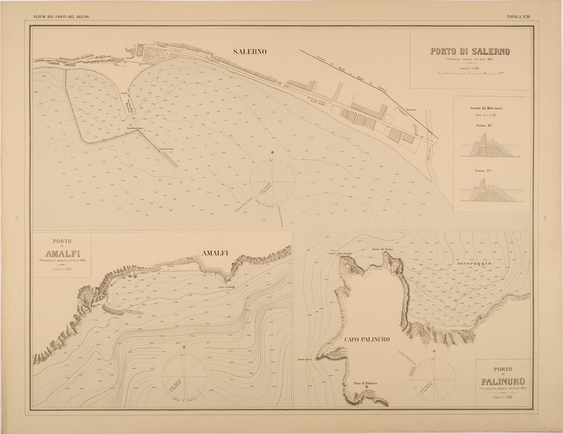 ALBUM DEI PORTI MARITTIMI DEL REGNO D'ITALIA - TAVOLA 16 - PORTI DI SALERNO - AMALFI - PALINURO