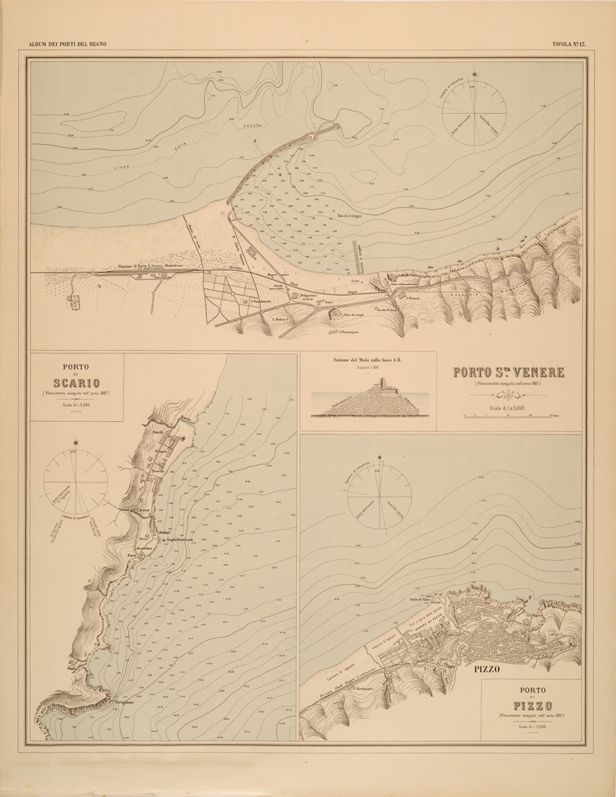 ALBUM DEI PORTI MARITTIMI DEL REGNO D'ITALIA - TAVOLA 17 - PORTI DI SANTA VENERE - SCARIO - PIZZO