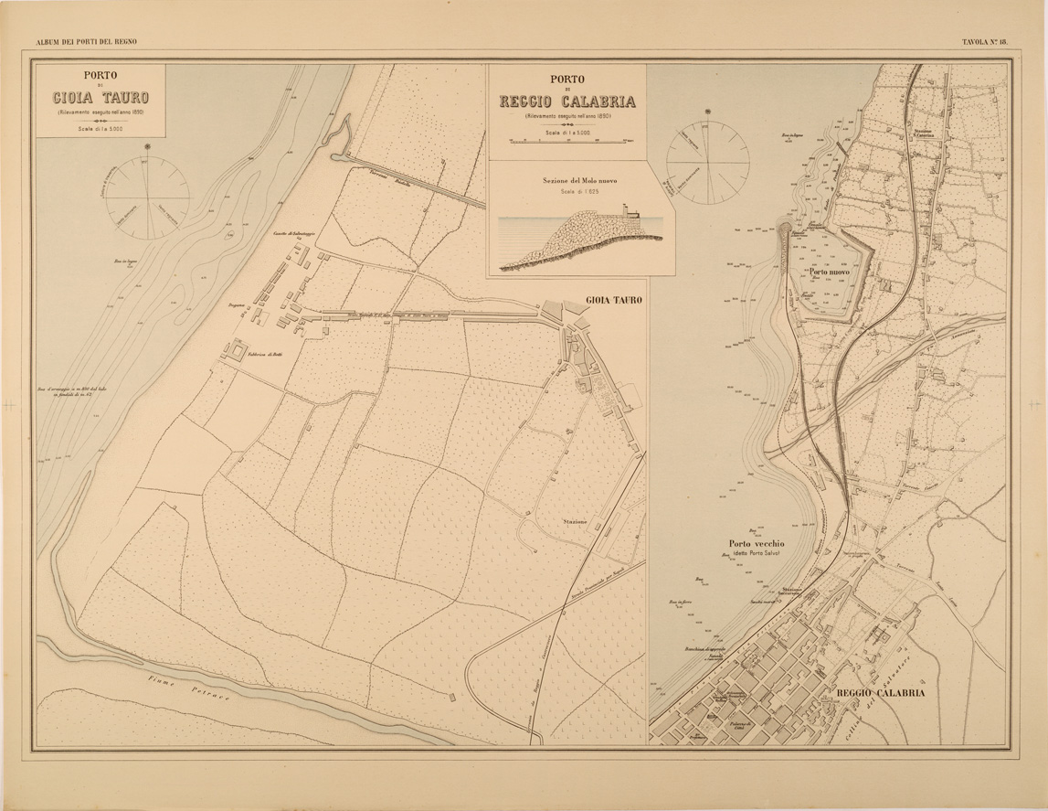 ALBUM DEI PORTI MARITTIMI DEL REGNO D'ITALIA - TAVOLA 18 - PORTI DI GIOIA TAURO - REGGIO CALABRIA