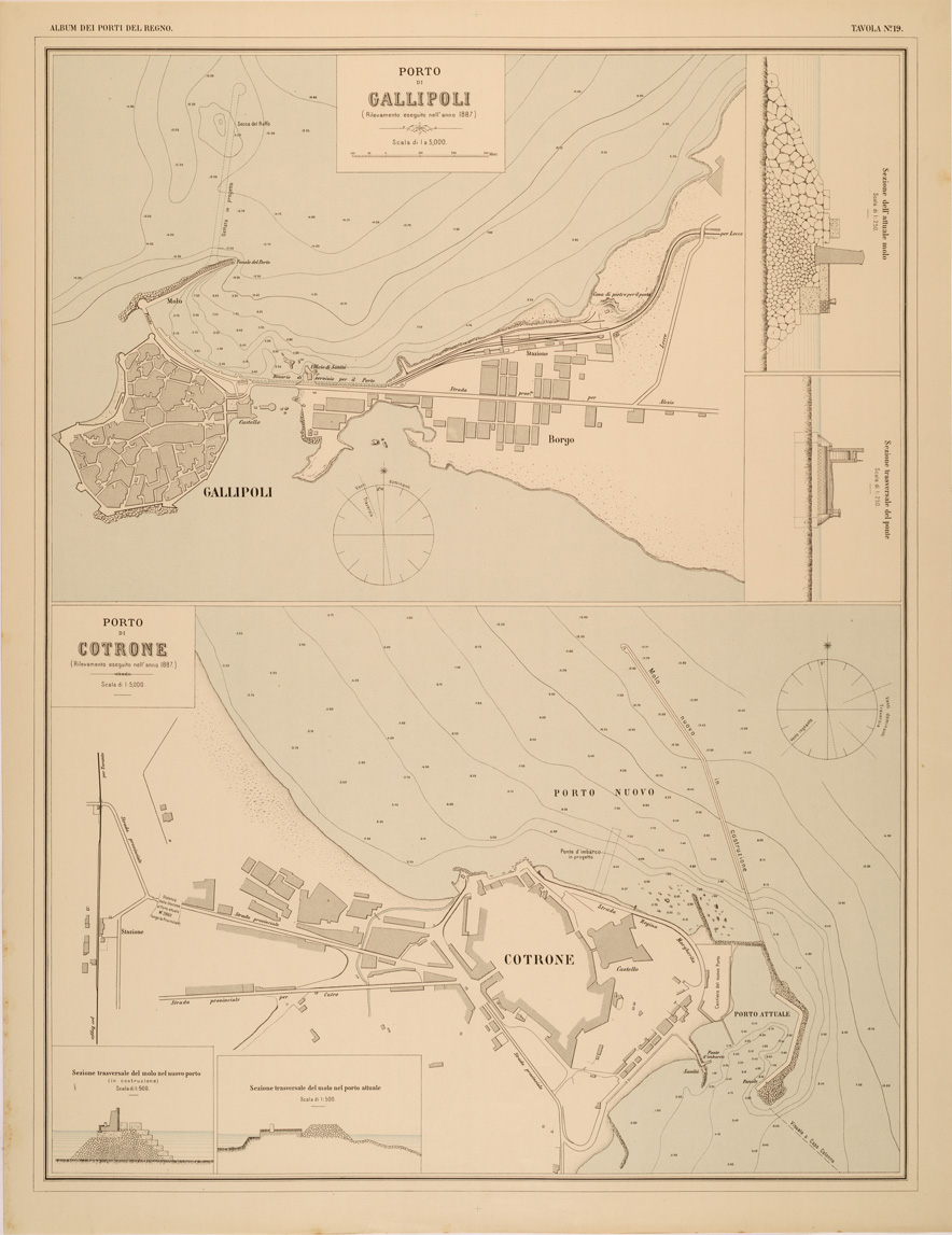 ALBUM DEI PORTI MARITTIMI DEL REGNO D'ITALIA - TAVOLA 19 - PORTI DI GALLIPOLI - COTRONE