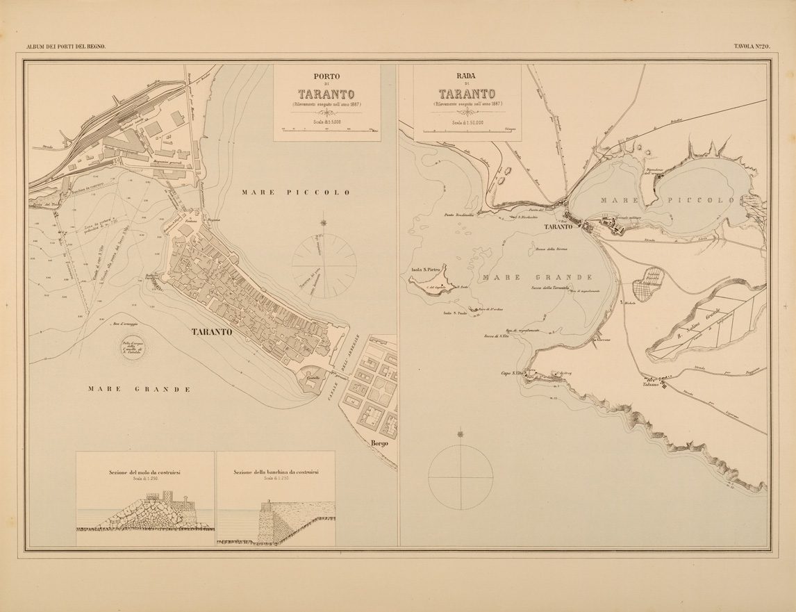 ALBUM DEI PORTI MARITTIMI DEL REGNO D'ITALIA - TAVOLA 20 - PORTO DI TARANTO - RADA DI TARANTO