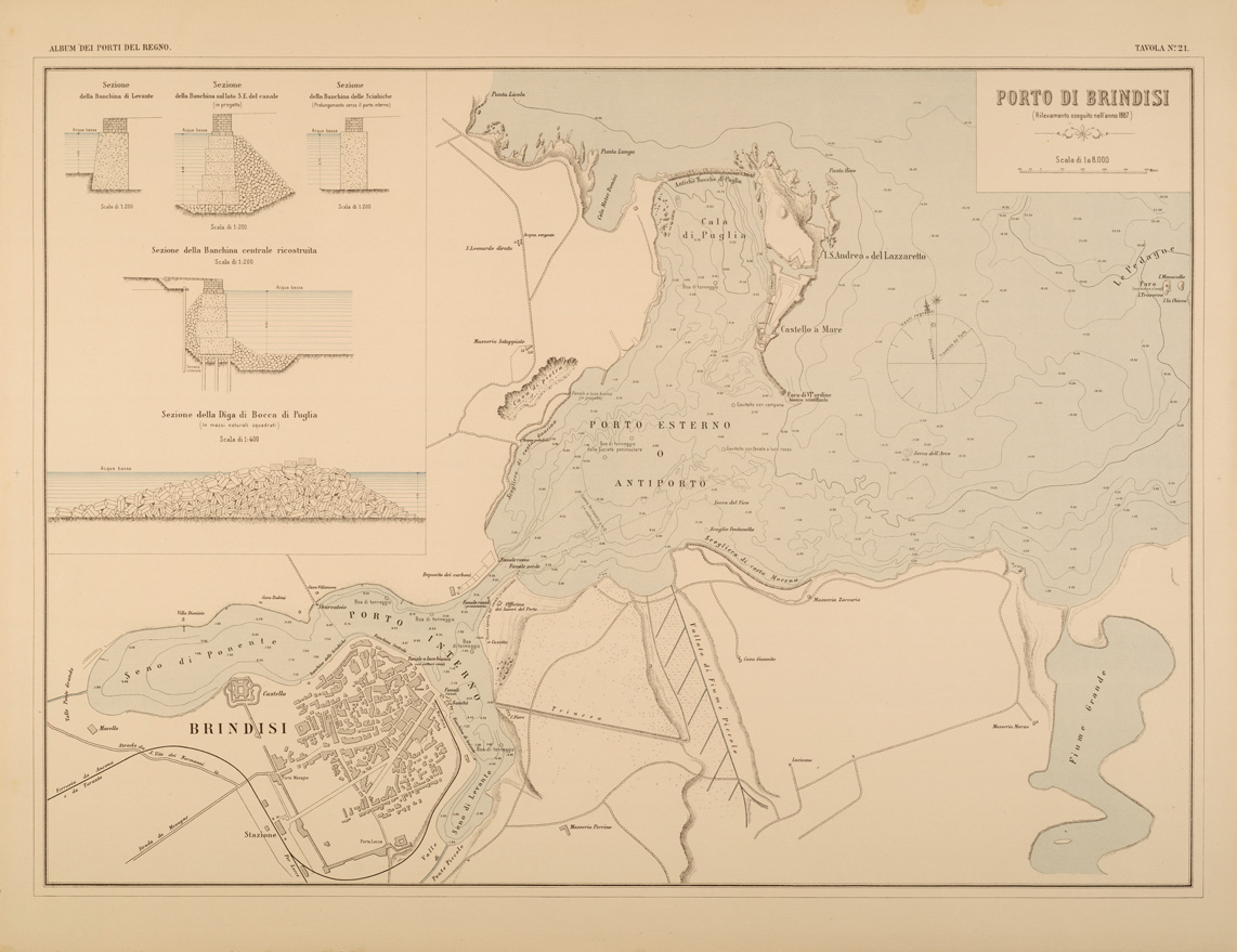 ALBUM DEI PORTI MARITTIMI DEL REGNO D'ITALIA - TAVOLA 21 - PORTO DI BRINDISI