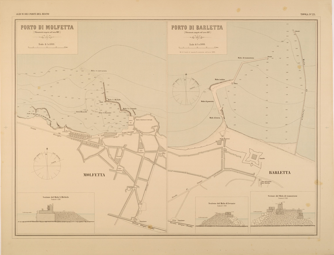 ALBUM DEI PORTI MARITTIMI DEL REGNO D'ITALIA - TAVOLA 23 - PORTI DI MOLFETTA - BARLETTA