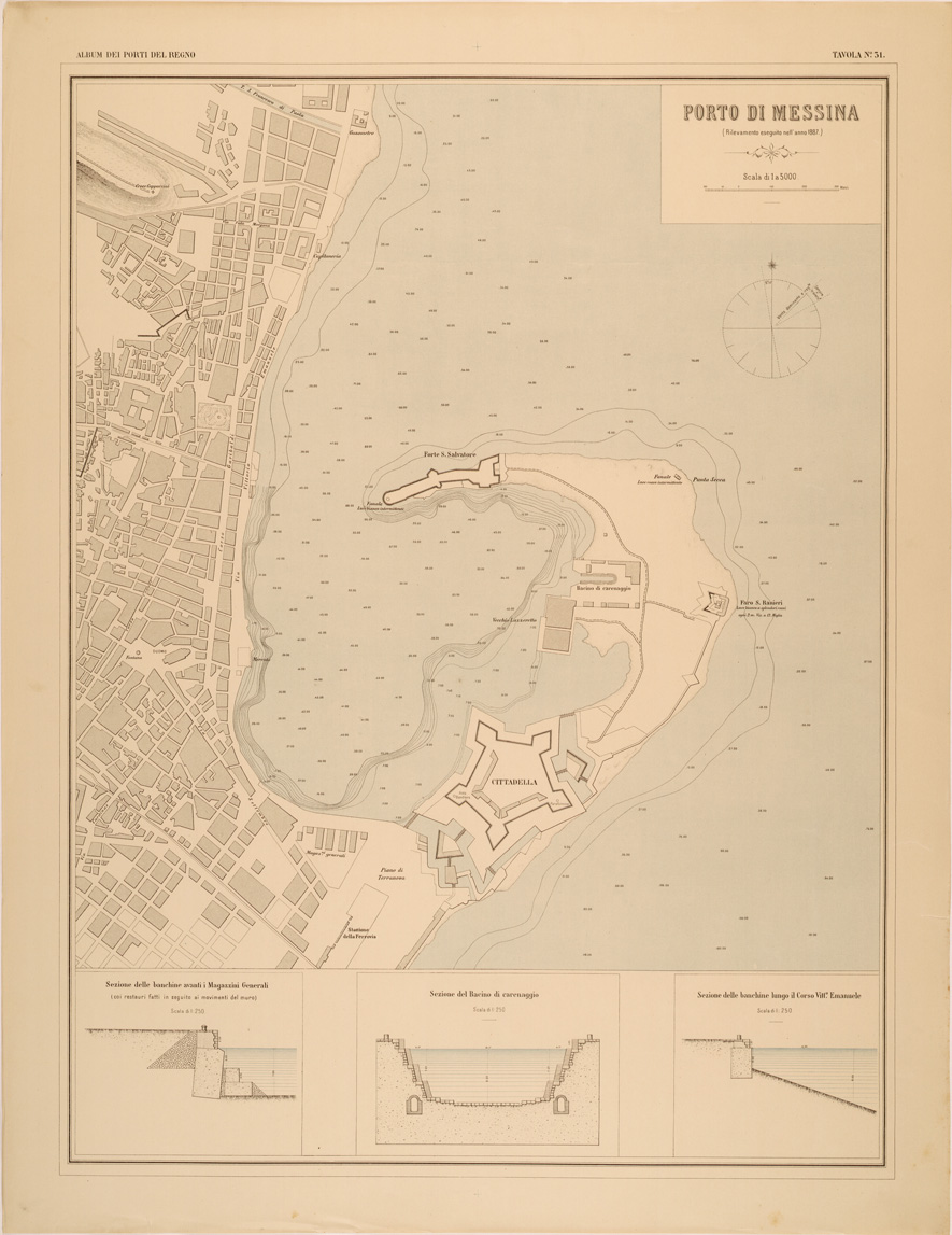 ALBUM DEI PORTI MARITTIMI DEL REGNO D'ITALIA - TAVOLA 31 - PORTO DI MESSINA