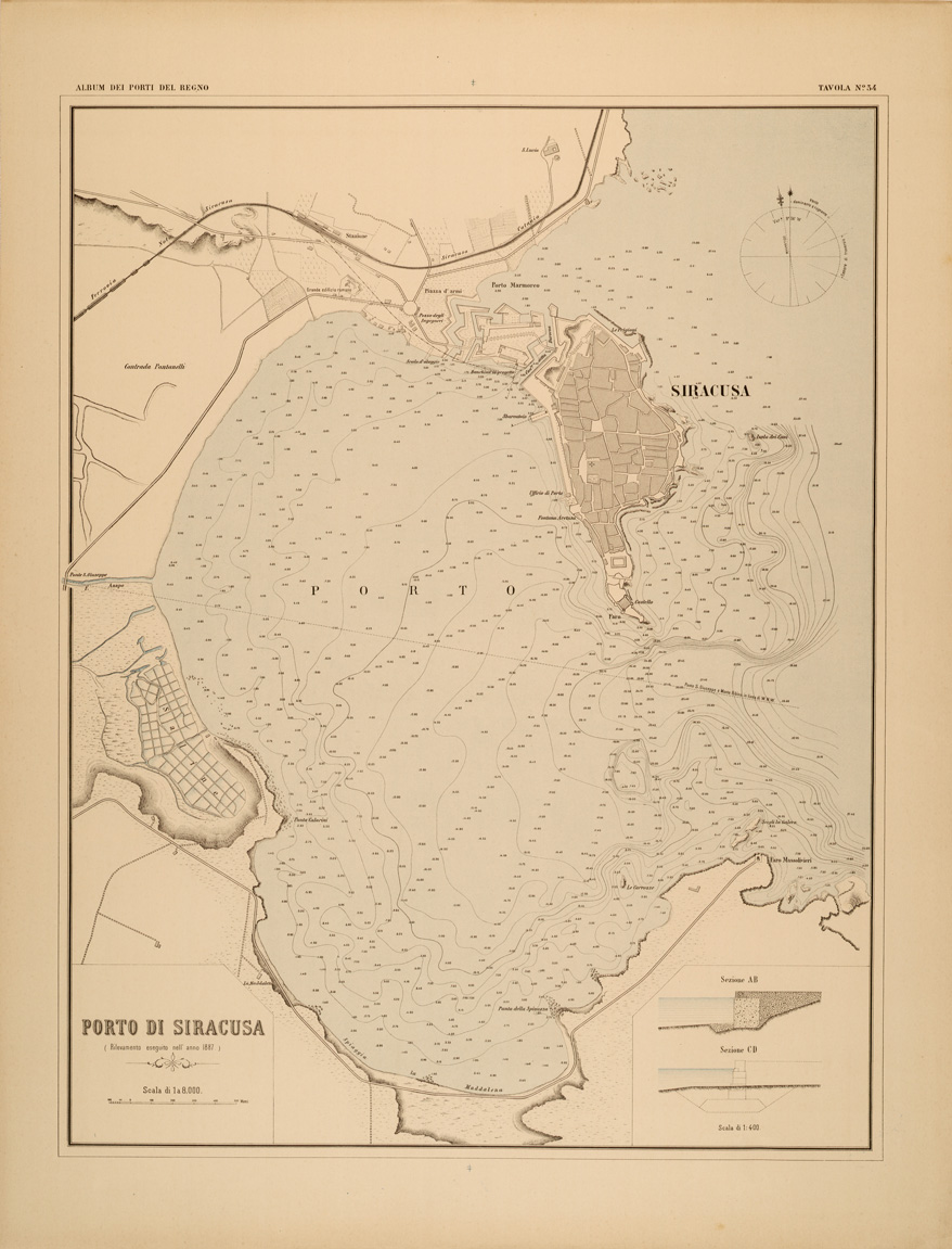 ALBUM DEI PORTI MARITTIMI DEL REGNO D'ITALIA - TAVOLA 34 - PORTO DI SIRACUSA