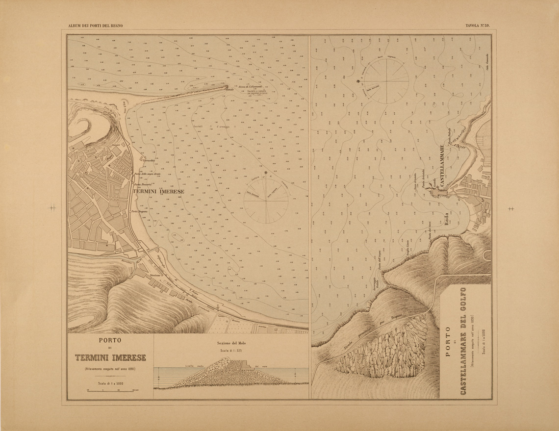 ALBUM DEI PORTI MARITTIMI DEL REGNO D'ITALIA - TAVOLA 39 - PORTI DI TERMINI IMERESE - CASTELLAMMARE DEL GOLFO