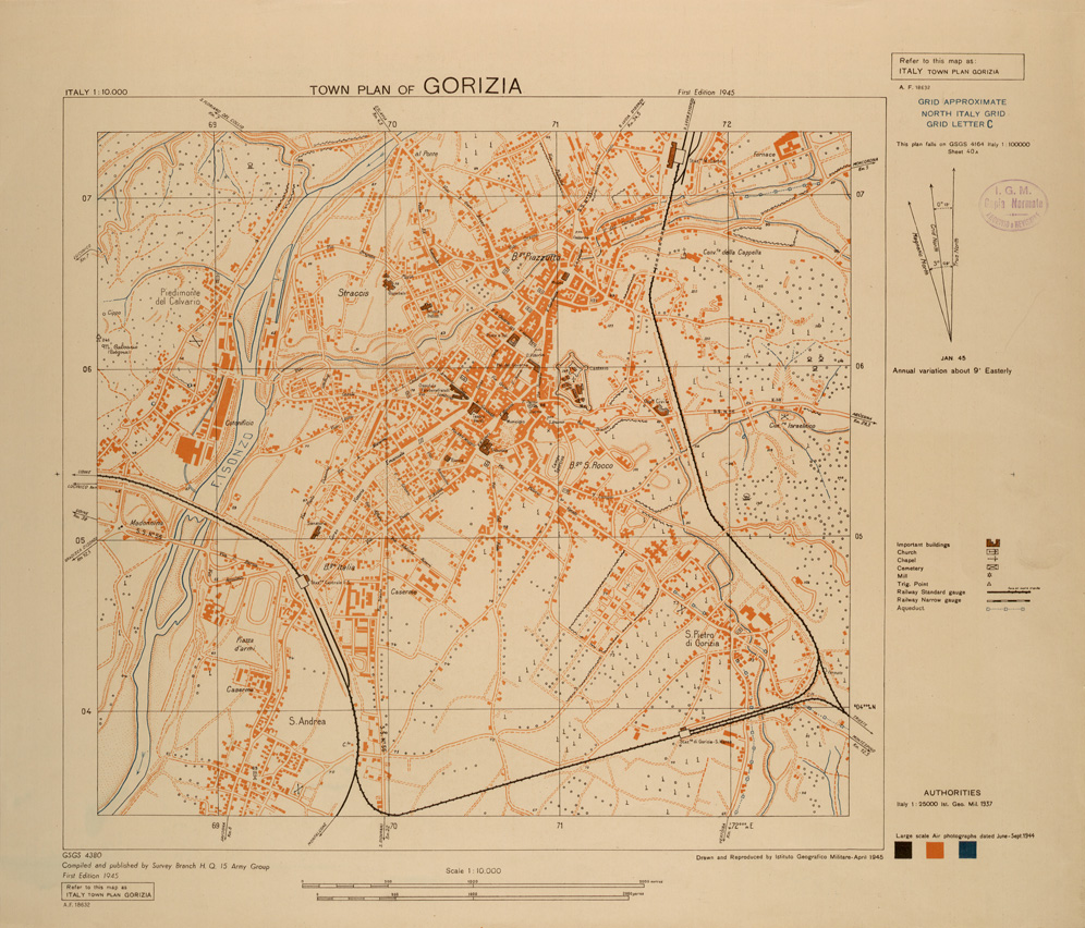 "Riproduzione IGM della carta del Survey Branch H. Q. 15 Army Group."