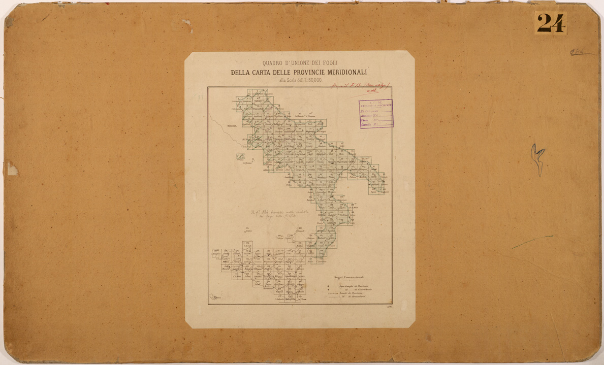 Il governo del Regno, considerando inadeguati i disomogenei lavori preunitari affidò nel 1872 all´Istituto Topografico Militare (il quale assunse l´attuale denominazione nel 1882) l´esecuzione del progetto di rilevamento generale del territorio dello Stato e della formazione della nuova Carta Topografica d´Italia alla scala 1:100000. L´Istituto, formatosi dalla fusione dell´Ufficio Tecnico del Corpo di Stato Maggiore del Regno Sardo con gli Istituti e gli Uffici topografici e cartografici dei diversi stati esistenti nella penisola prima che si compisse la sua unità politica, ereditò il materiale scientifico e cartografico preunitario caratterizzandosi di fatto come il depositario e continuatore della scuola e della tradizione cartografica nazionale.