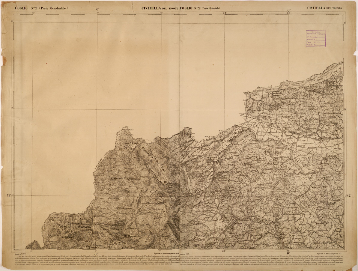 "Carta realizzata negli anni successivi all' unità d' Italia dall' appena istituito Ufficio Tecnico dello Stato Maggiore, poi divenuto Istituto Topografico Militare, attuale IGM, al fine di avere una copertura cartografica regolare di quelle regioni che ne erano sprovviste, nell' ottica di una successiva, generale unificazione cartografica nazionale."