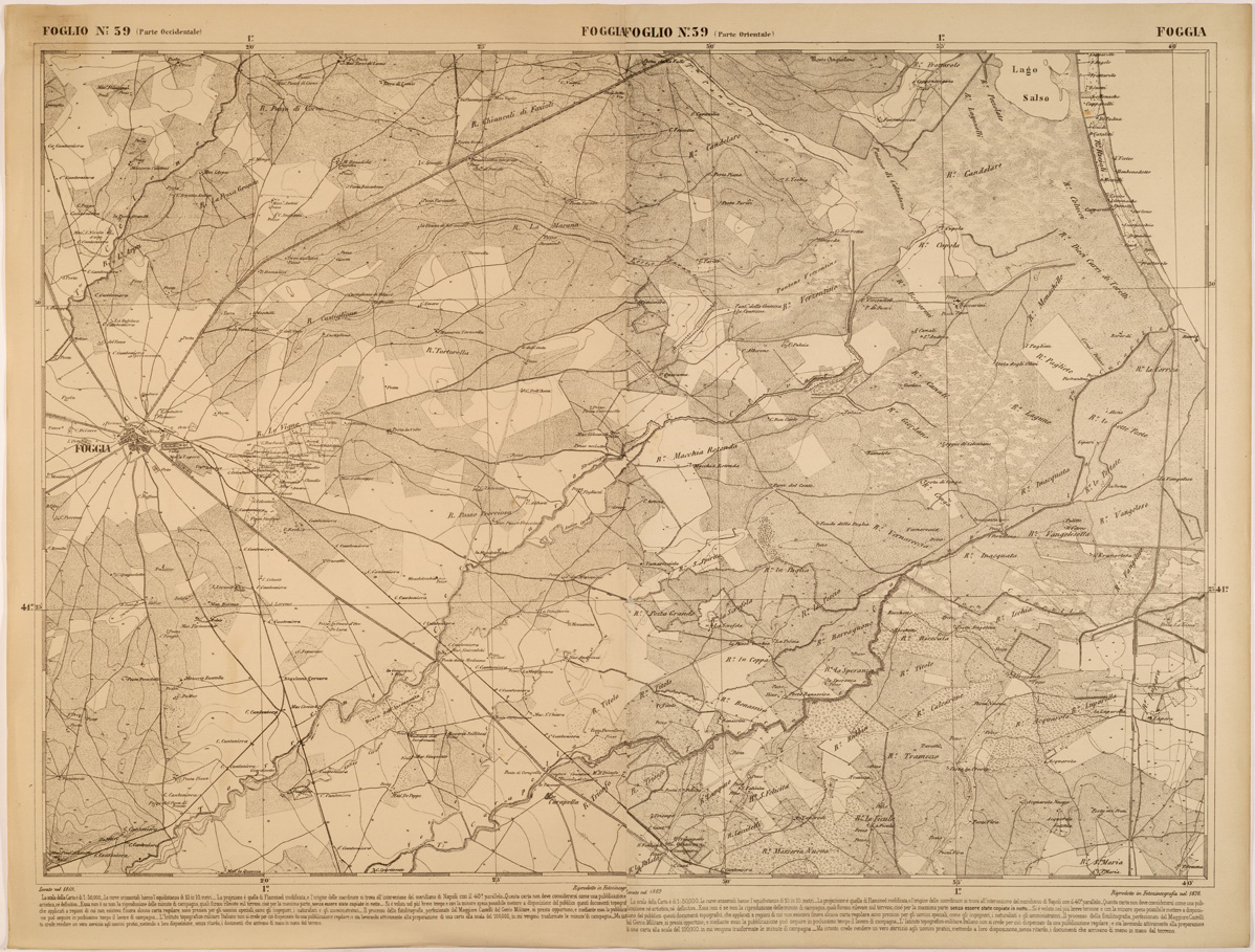 "Carta realizzata negli anni successivi all' unità d' Italia dall' appena istituito Ufficio Tecnico dello Stato Maggiore, poi divenuto Istituto Topografico Militare, attuale IGM, al fine di avere una copertura cartografica regolare di quelle regioni che ne erano sprovviste, nell' ottica di una successiva, generale unificazione cartografica nazionale."