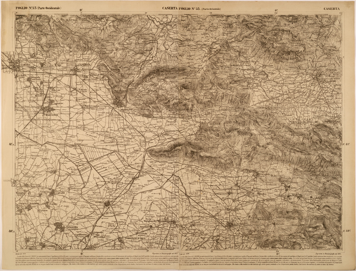 "Carta realizzata negli anni successivi all' unità d' Italia dall' appena istituito Ufficio Tecnico dello Stato Maggiore, poi divenuto Istituto Topografico Militare, attuale IGM, al fine di avere una copertura cartografica regolare di quelle regioni che ne erano sprovviste, nell' ottica di una successiva, generale unificazione cartografica nazionale."