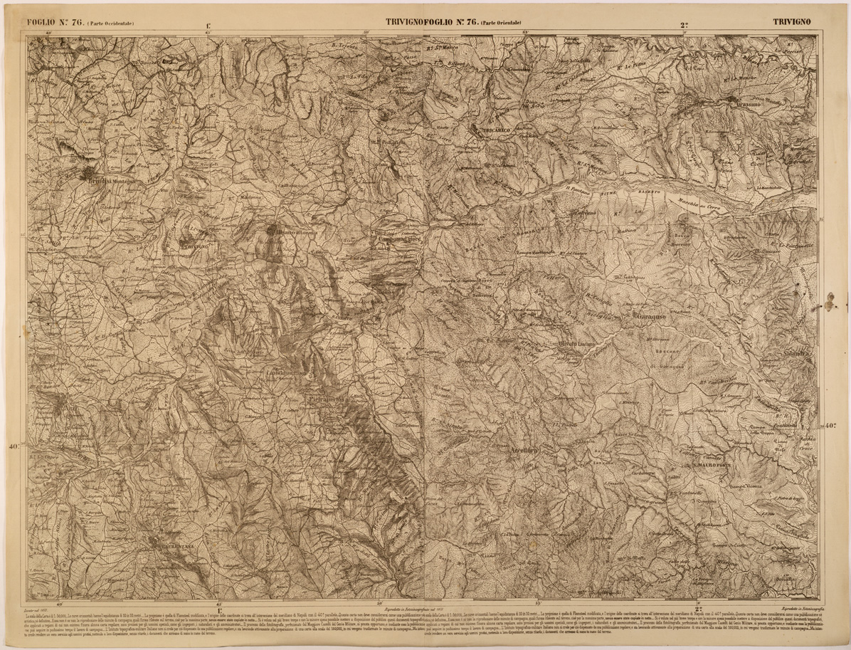 "Carta realizzata negli anni successivi all' unità d' Italia dall' appena istituito Ufficio Tecnico dello Stato Maggiore, poi divenuto Istituto Topografico Militare, attuale IGM, al fine di avere una copertura cartografica regolare di quelle regioni che ne erano sprovviste, nell' ottica di una successiva, generale unificazione cartografica nazionale."