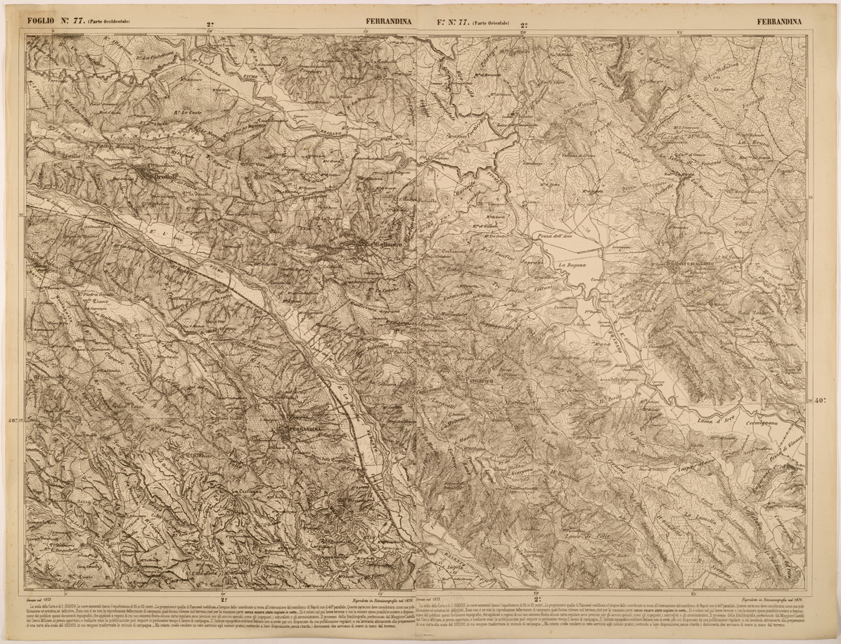 "Carta realizzata negli anni successivi all' unità d' Italia dall' appena istituito Ufficio Tecnico dello Stato Maggiore, poi divenuto Istituto Topografico Militare, attuale IGM, al fine di avere una copertura cartografica regolare di quelle regioni che ne erano sprovviste, nell' ottica di una successiva, generale unificazione cartografica nazionale."