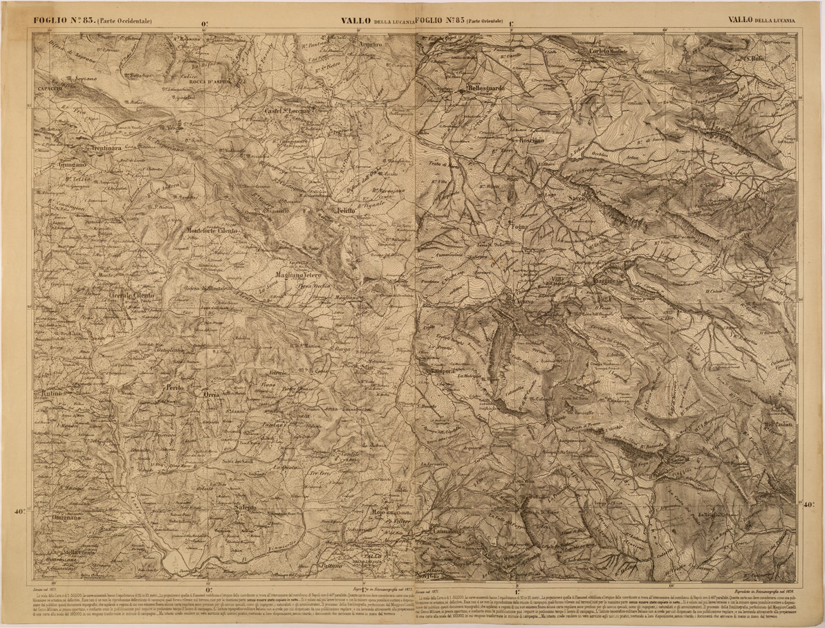 "Carta realizzata negli anni successivi all' unità d' Italia dall' appena istituito Ufficio Tecnico dello Stato Maggiore, poi divenuto Istituto Topografico Militare, attuale IGM, al fine di avere una copertura cartografica regolare di quelle regioni che ne erano sprovviste, nell' ottica di una successiva, generale unificazione cartografica nazionale."