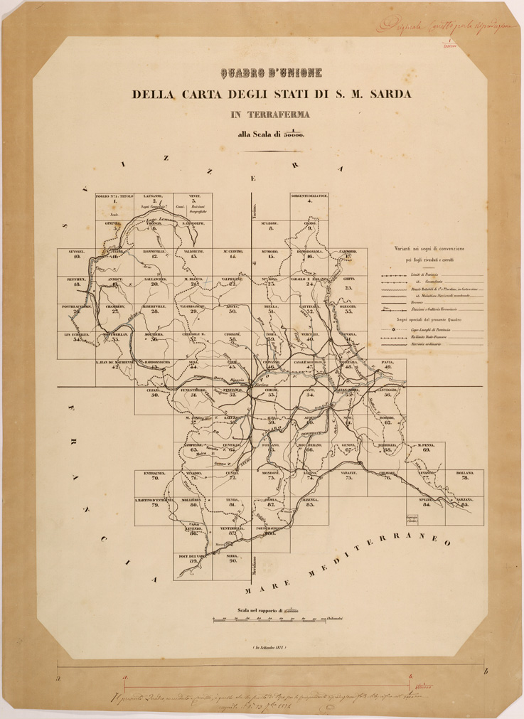L´Italia, a causa delle particolari vicende storiche, solo dopo il 1870 formulò un progetto cartografico unitario.