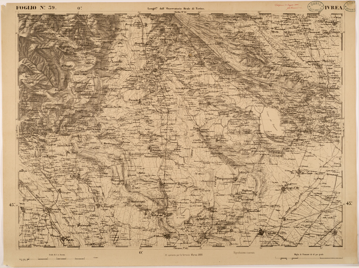 I rilevamenti topografici per la realizzazione della “Carta d´Italia&lrquo” iniziarono nel 1878: si trattava di un´opera così importante e lodevole che meritò la consapevole attenzione, non solo degli addetti ai lavori e delle categorie professionali coinvolte, ma anche delle più alte autorità del Regno.