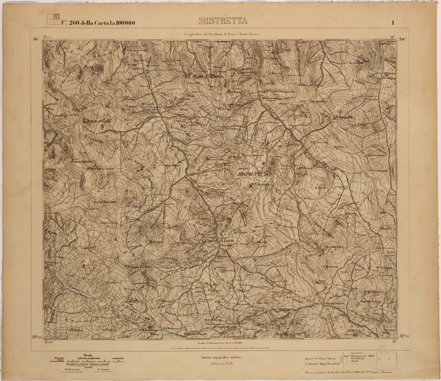 I rilevamenti topografici per la realizzazione della “Carta d´Italia&lrquo” iniziarono nel 1878: si trattava di un´opera così importante e lodevole che meritò la consapevole attenzione, non solo degli addetti ai lavori e delle categorie professionali coinvolte, ma anche delle più alte autorità del Regno.