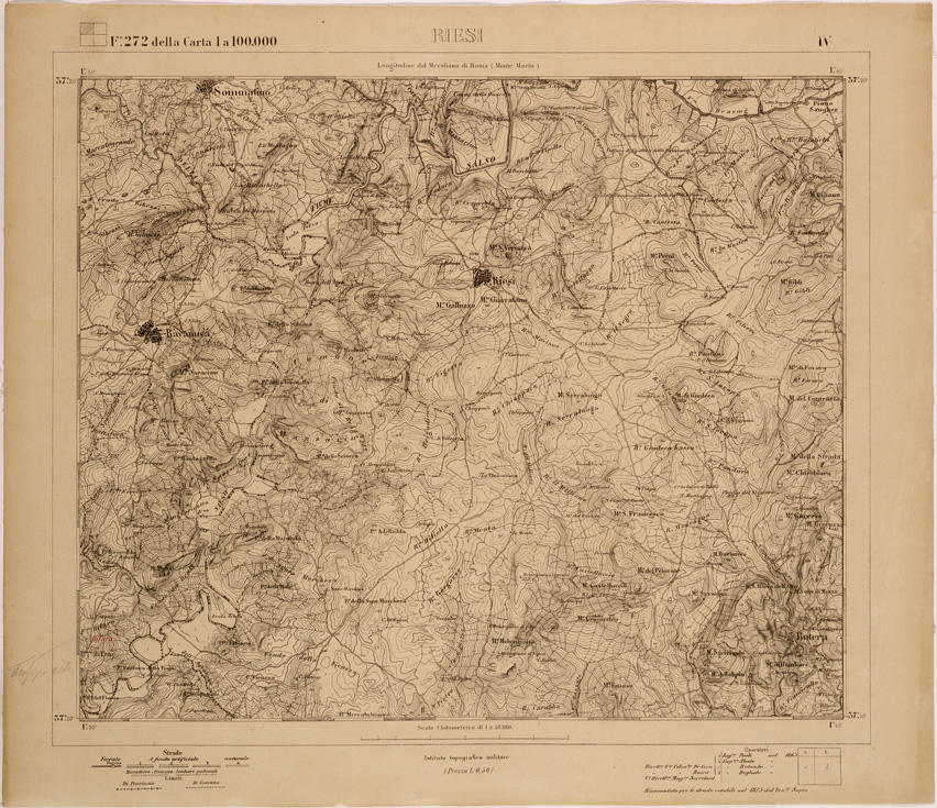I rilevamenti topografici per la realizzazione della “Carta d´Italia&lrquo” iniziarono nel 1878: si trattava di un´opera così importante e lodevole che meritò la consapevole attenzione, non solo degli addetti ai lavori e delle categorie professionali coinvolte, ma anche delle più alte autorità del Regno.