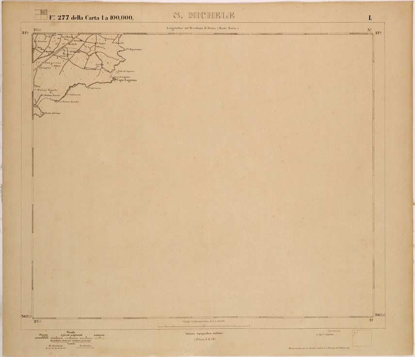 I rilevamenti topografici per la realizzazione della “Carta d´Italia&lrquo” iniziarono nel 1878: si trattava di un´opera così importante e lodevole che meritò la consapevole attenzione, non solo degli addetti ai lavori e delle categorie professionali coinvolte, ma anche delle più alte autorità del Regno.