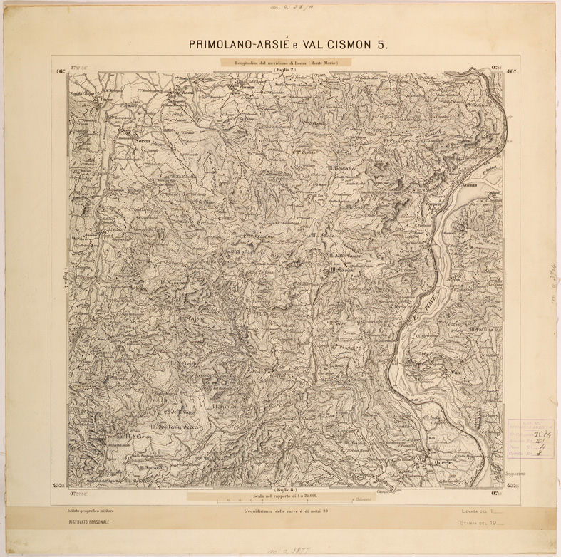 I rilevamenti topografici per la realizzazione della “Carta d´Italia&lrquo” iniziarono nel 1878: si trattava di un´opera così importante e lodevole che meritò la consapevole attenzione, non solo degli addetti ai lavori e delle categorie professionali coinvolte, ma anche delle più alte autorità del Regno.