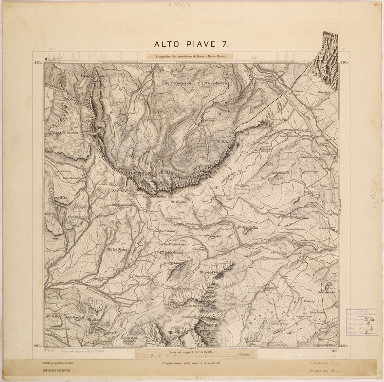 La “Grande Guerra” rallentò notevolmente l´attività topocartografica programmata e quasi tutte le energie dell´Istituto furono profuse per i lavori topografici di supporto alle operazioni militari. Dopo il trattato di pace i primi lavori cartografici riguardarono i territori redenti.