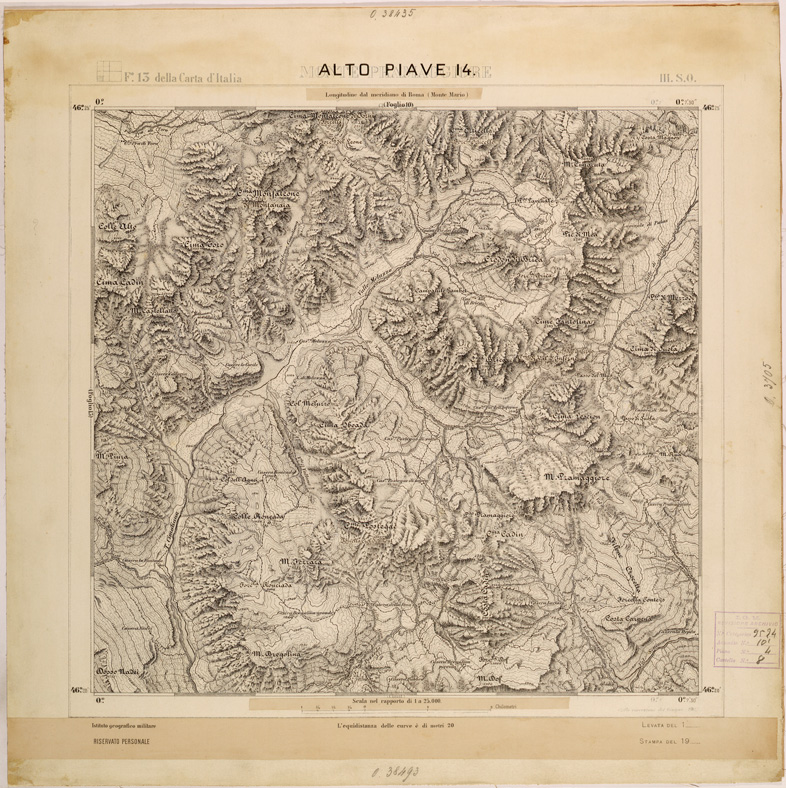 La “Grande Guerra” rallentò notevolmente l´attività topocartografica programmata e quasi tutte le energie dell´Istituto furono profuse per i lavori topografici di supporto alle operazioni militari. Dopo il trattato di pace i primi lavori cartografici riguardarono i territori redenti.