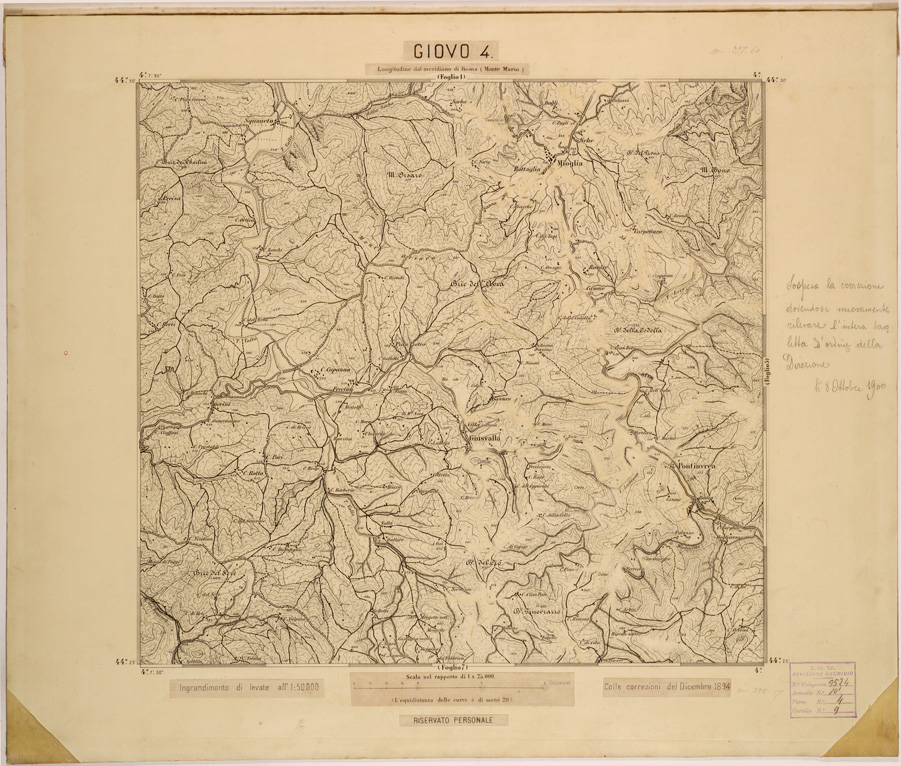 I rilevamenti topografici per la realizzazione della “Carta d´Italia&lrquo” iniziarono nel 1878: si trattava di un´opera così importante e lodevole che meritò la consapevole attenzione, non solo degli addetti ai lavori e delle categorie professionali coinvolte, ma anche delle più alte autorità del Regno.