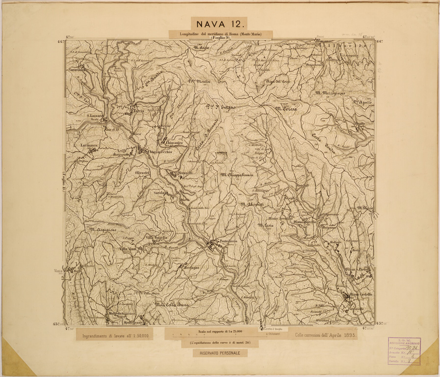 I rilevamenti topografici per la realizzazione della “Carta d´Italia&lrquo” iniziarono nel 1878: si trattava di un´opera così importante e lodevole che meritò la consapevole attenzione, non solo degli addetti ai lavori e delle categorie professionali coinvolte, ma anche delle più alte autorità del Regno.