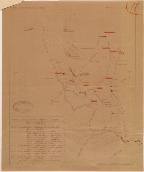 "Copia eliografica della 27° Squadra Topocartografica del Comando Forze Armate della Somalia."