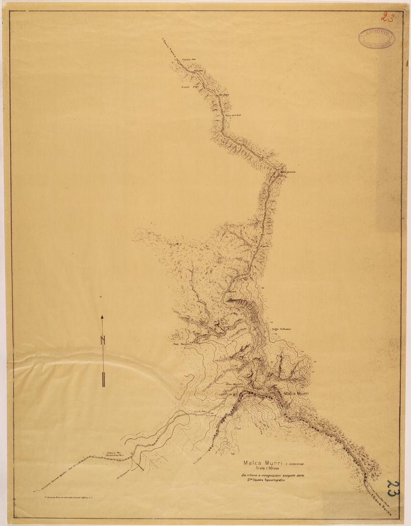 "Copia eliografica della 27° Squadra Topocartografica del Comando Forze Armate della Somalia."