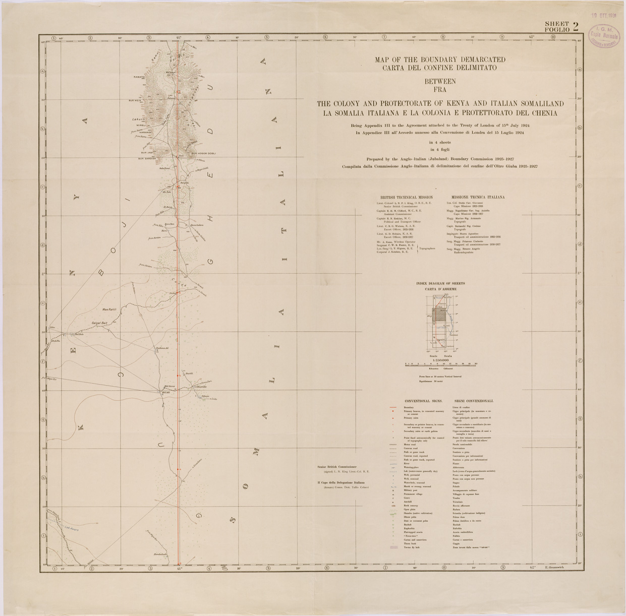 CARTA DEL CONFINE DELIMITATO FRA LA SOMALIA ITALIANA E LA COLONIA E PROTETTORATO DEL CHENIA ( KENIA ) FOGLIO 2