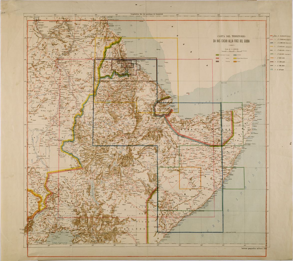 "La carta riporta la situazione dei lavori cartografici a varie scale eseguiti in Africa."