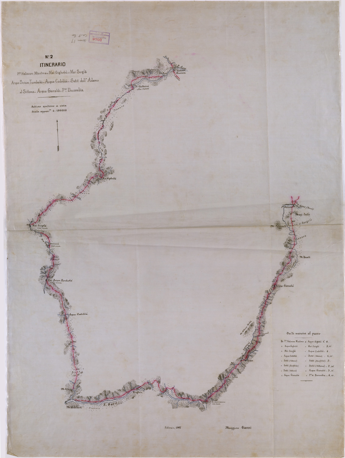 ITINERARIO BARENTU' TOLE - FOGLIO 2 - P.ZO HALASEN MISCIMA MAI GIGHEBU' MAI SCIGLA' ACQUA SCIUM TUMBAKA' ACQUA CODEBBA' SETIT DALL'ADAMO AL SITTONA ACQUA GIARABA' P.ZO DUCAMBIA