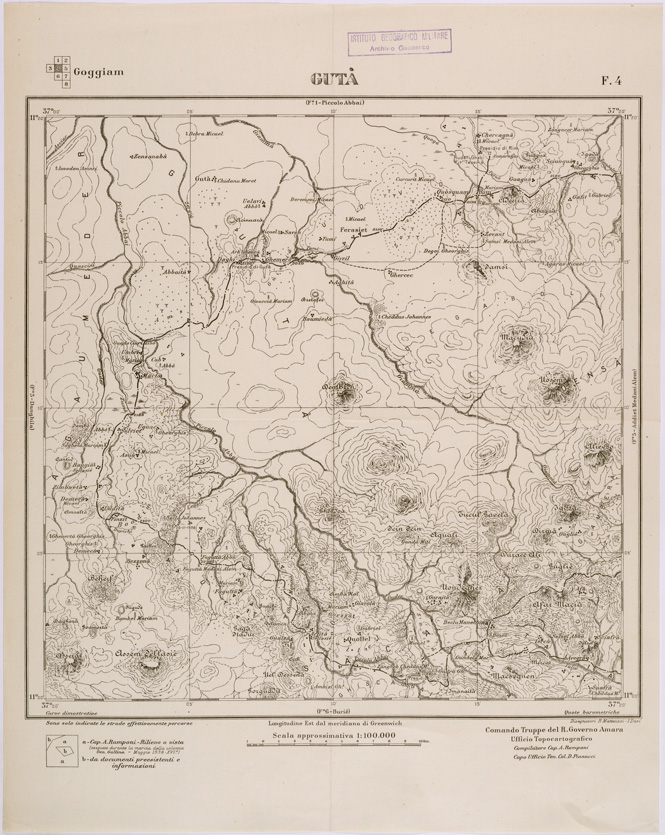 Il governo del Regno, considerando inadeguati i disomogenei lavori preunitari affidò nel 1872 all´Istituto Topografico Militare (il quale assunse l´attuale denominazione nel 1882) l´esecuzione del progetto di rilevamento generale del territorio dello Stato e della formazione della nuova Carta Topografica d´Italia alla scala 1:100000. L´Istituto, formatosi dalla fusione dell´Ufficio Tecnico del Corpo di Stato Maggiore del Regno Sardo con gli Istituti e gli Uffici topografici e cartografici dei diversi stati esistenti nella penisola prima che si compisse la sua unità politica, ereditò il materiale scientifico e cartografico preunitario caratterizzandosi di fatto come il depositario e continuatore della scuola e della tradizione cartografica nazionale.