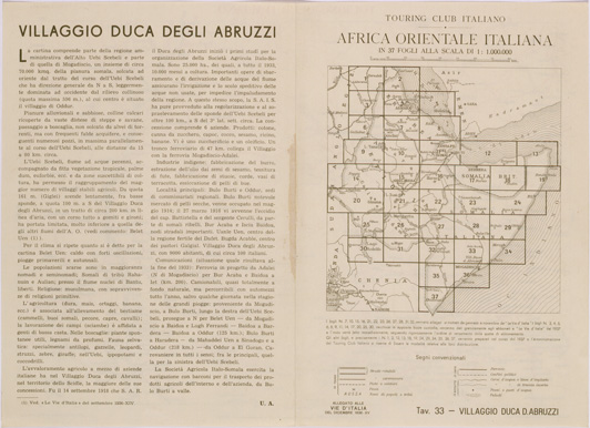 CARTA DELL'AFRICA ORIENTALE ITALIANA FOGLIO 33 VILLAGGIO DUCA DEGLI ABRUZZI (RETRO)