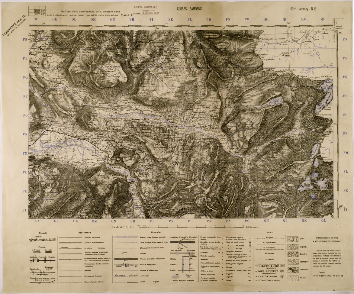 "Carta realizzata dall' IGM mediante ingrandimento della carta alla scala di 1:80.000 dell' Istituto Geografico Francese, edizione 1936 stampa 1937"