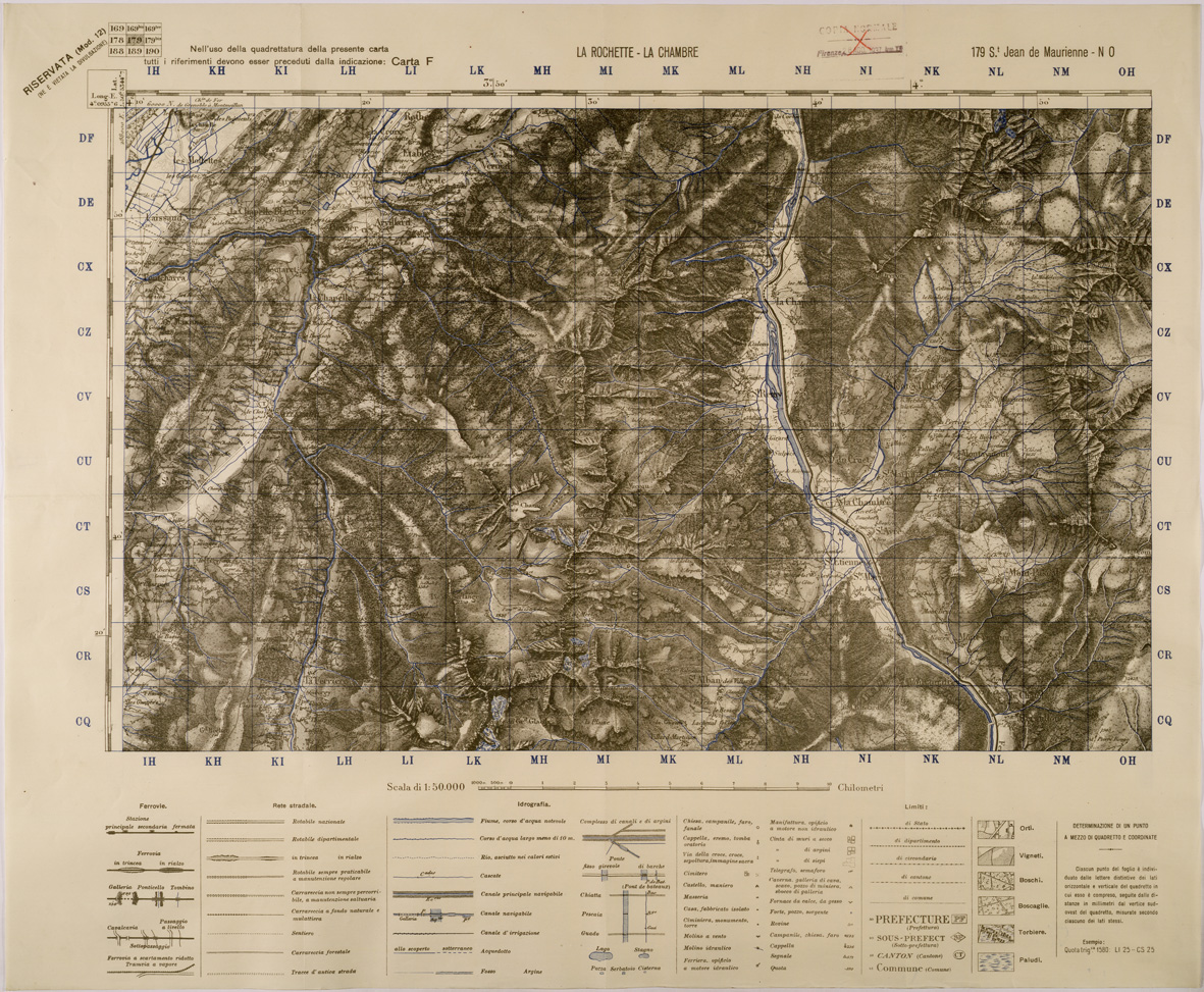 "Carta realizzata dall' IGM mediante ingrandimento della carta alla scala di 1:80.000 dell' Istituto Geografico Francese, edizione 1936 stampa 1937"