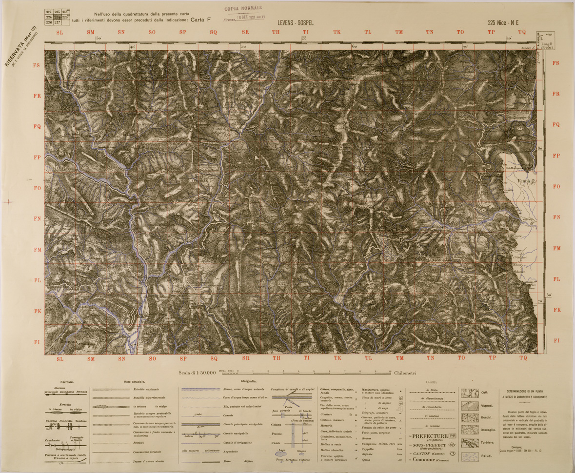 "Carta realizzata dall' IGM mediante ingrandimento della carta alla scala di 1:80.000 dell' Istituto Geografico Francese, edizione 1936 stampa 1937"