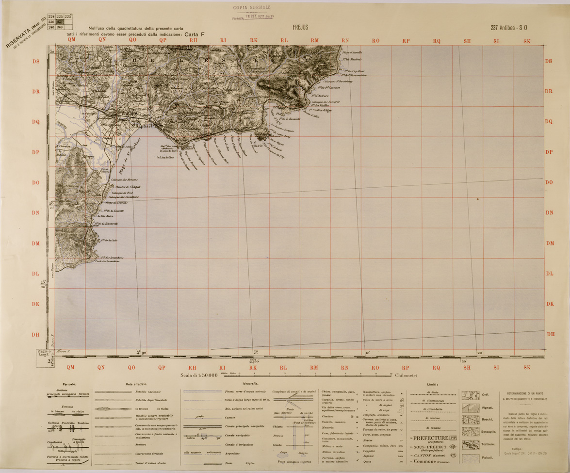 "Carta realizzata dall' IGM mediante ingrandimento della carta alla scala di 1:80.000 dell' Istituto Geografico Francese, edizione 1936 stampa 1937"